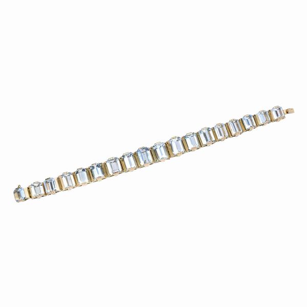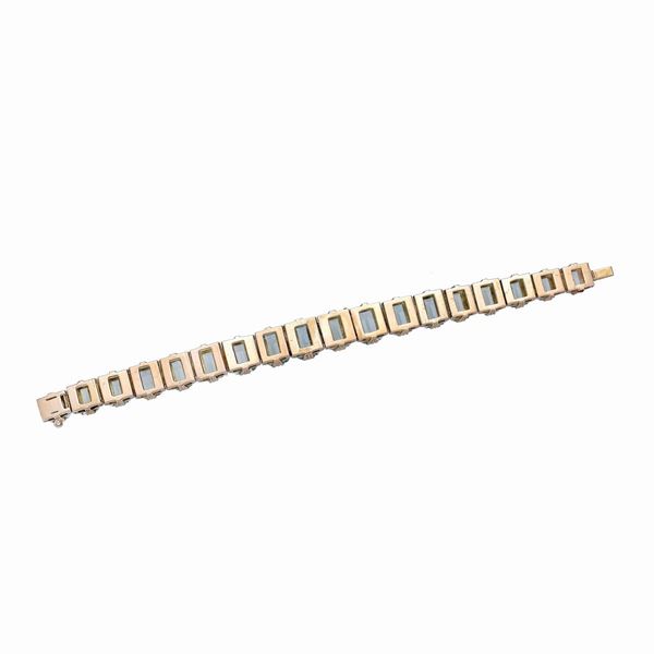 open 18cmDESCRIPTION: bracelet made with eighteen degradé aquamarines, each to embellish a rose gold link made as a semicircle WEIGHT: aquamarine ct 30, gr 49.7