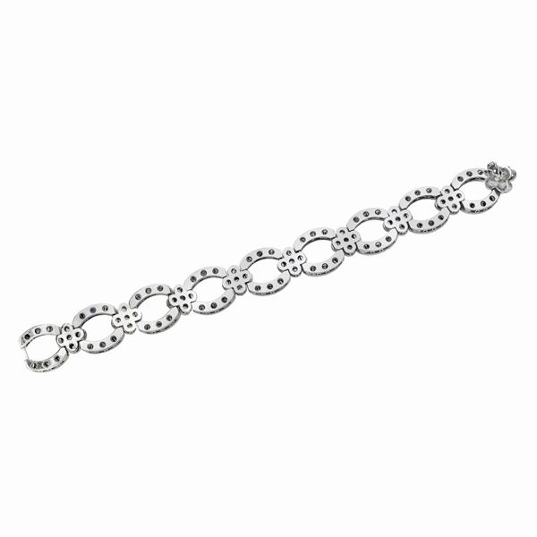 Bracelet in 18 kt white gold, diamonds and sapphires