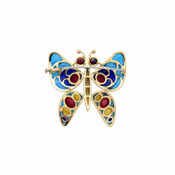 Butterfly brooch in 18kt yellow gold and polychrome enamels