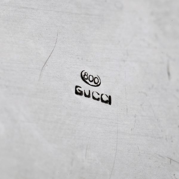 Set of twelve teaspoons in sterling silver and polychrome enamels, and Gucci 800 silver cup