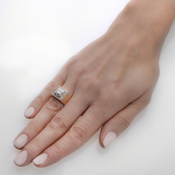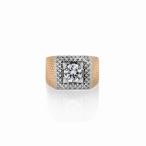 Solitaire ring in 18 kt yellow gold, white gold and diamond