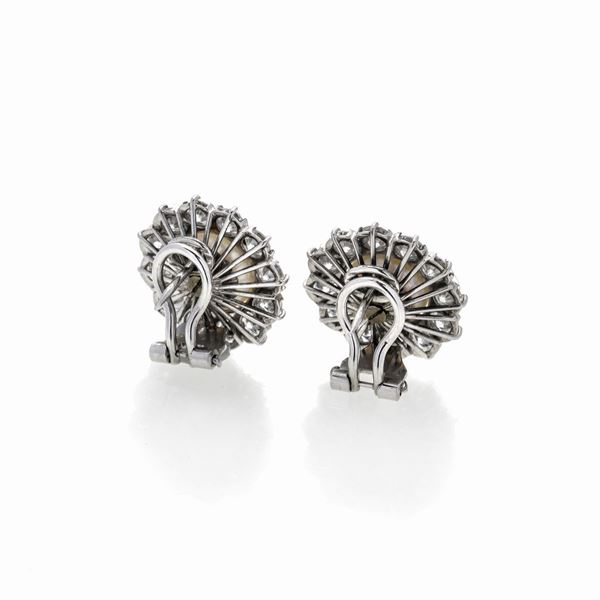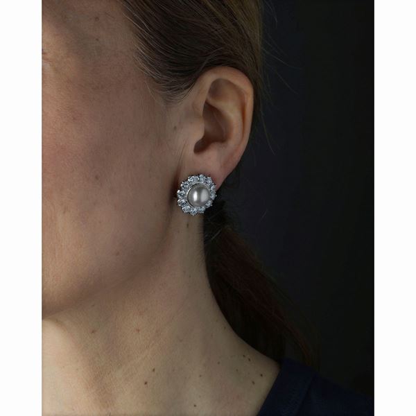 diameter cm 2Pair of earrings with twenty-four brilliant-cut diamonds weighing 3.60 ct, color H, VS and two pearls measuring approximately 9 mm in diameter, 11.5 gr