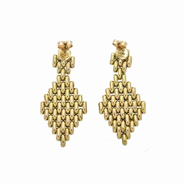 2cm x 5hPair of gold pendant earrings in imitation of fabric, of geometric inspiration, bear the 750 mark, 11.3 g