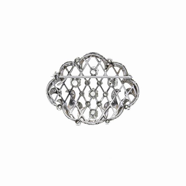 Brooch made of tricot with old cut, brilliant cut and huit huit cut diamonds for approximately 4.0 ct, color H-I, SI, 13.5 g