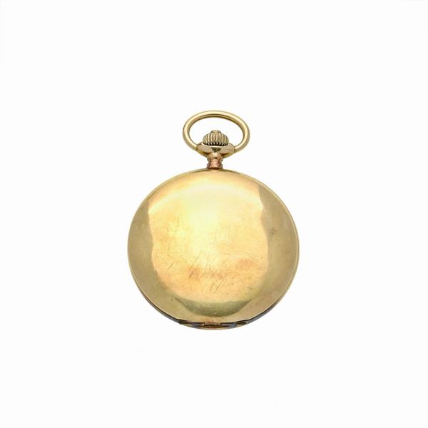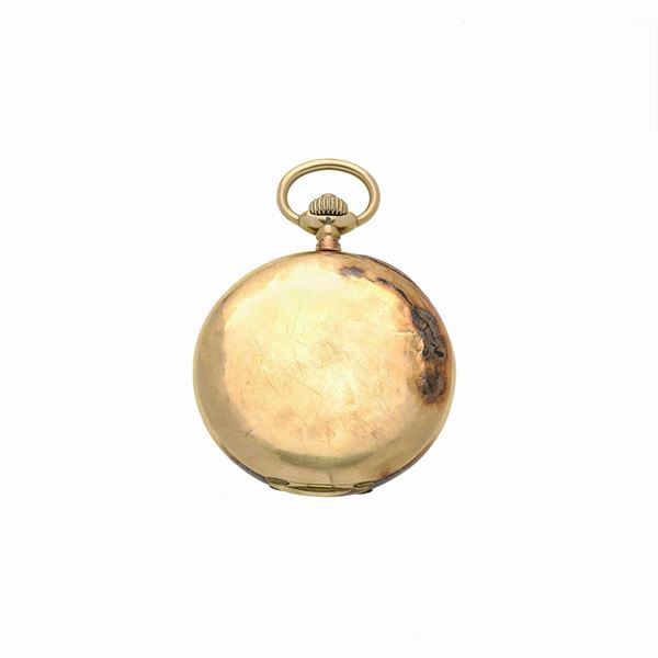 diameter 5 cmCASE: double in smooth gold DIAL: gold with Breguet numerals, openwork hands and seconds at 6 o'clock MOVEMENT: manual winding, hour setting with lever at 4 o'clock WEIGHT: 82.2 g
