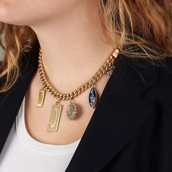 Two 18kt yellow gold bracelets with charms, joinable to form a choker