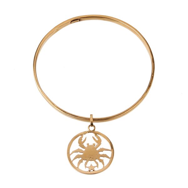 18 kt yellow gold circle bracelet with pendant made like Cancer