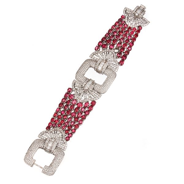 Important bracelet in 18 kt white gold, diamonds and rubies