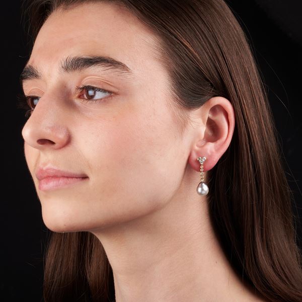 h 2.8 cm9 mm gray pear-shaped pearls, brilliant-cut diamonds of approximately 0.60 ct, color G-H, SI, 5.1 g
