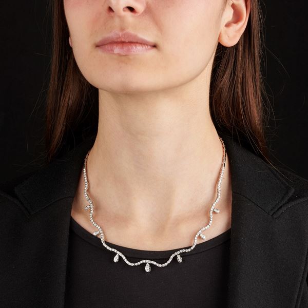 Open length 44.5 cmbrilliant cut diamonds weighing 3.50 ct, color G-H, SI, 24.7 g