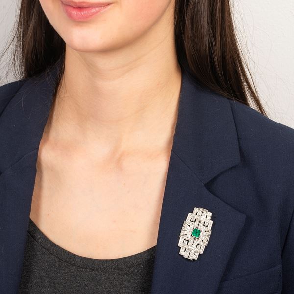 cm 4.6x 2.5 hOctagonal cut emerald of approximately 2.0 ct, brilliant cut and huit huit diamonds for 3.0 ct cicra, color H-I, P1gr 8.3