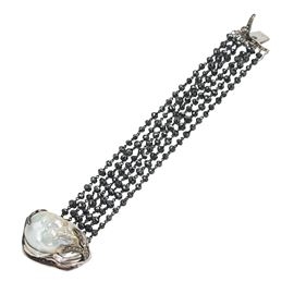 18kt white gold bracelet with black diamonds, a scaramazza pearl and brown diamonds