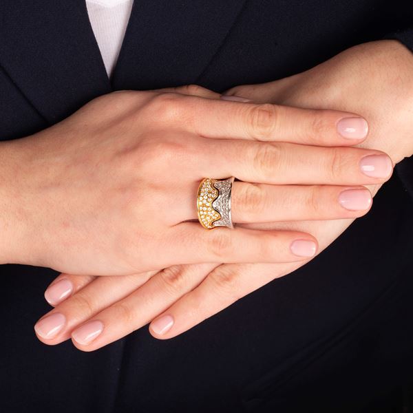 ALFIERI E ST JOHN Band ring in 18 kt yellow and white gold and diamonds