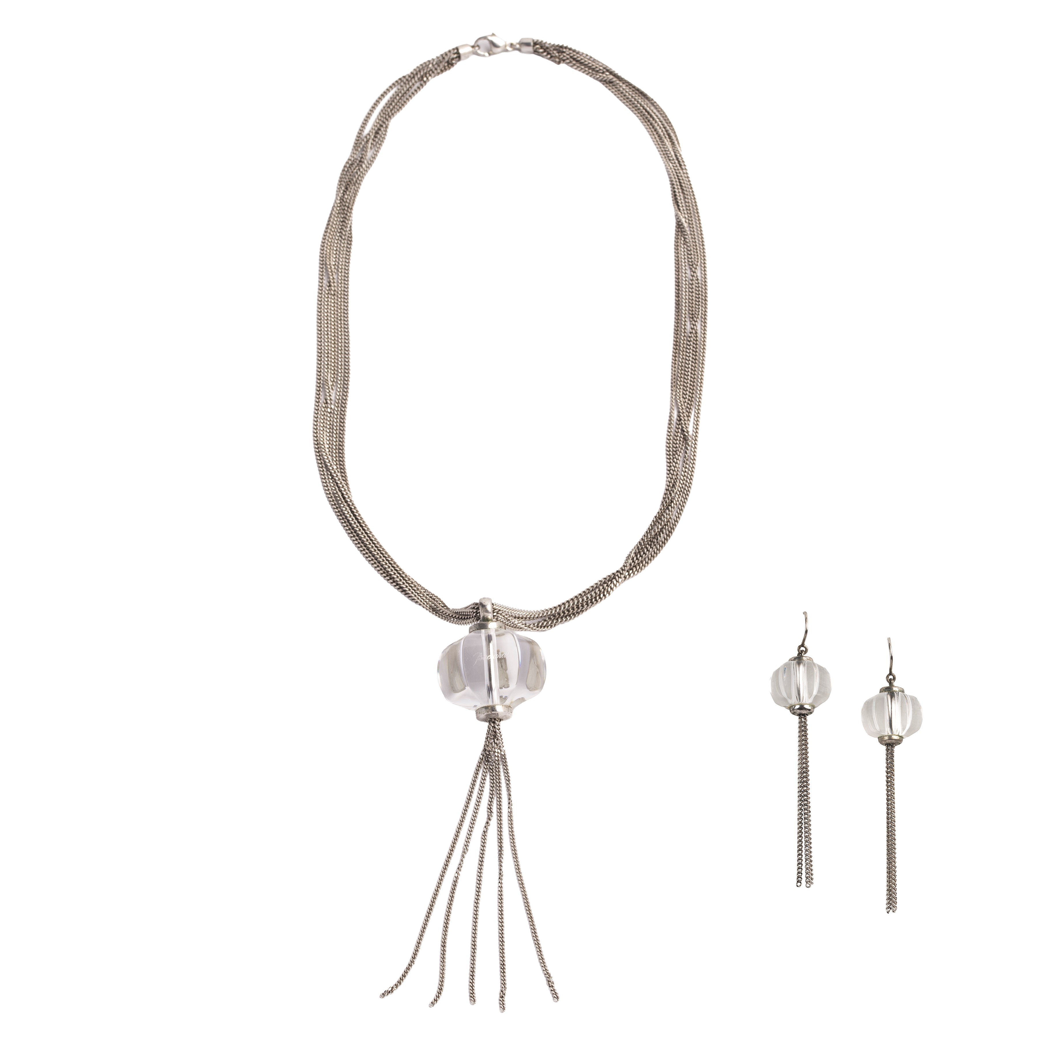 BACCARAT Pair of drop earrings and long necklace in 925 silver and crystal