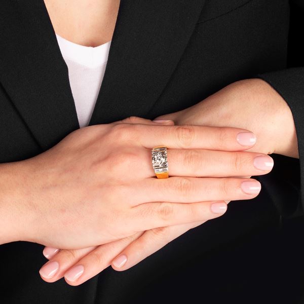Band ring in 18 kt yellow and white gold and diamonds