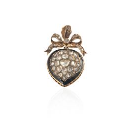 2.2 x 4 h cmCentral heart-cut diamonds and lateral rose-cut diamonds, approximately 2 ct, 6.7 g