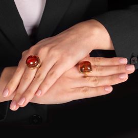 Two rings in 18 kt yellow gold and Baltic amber