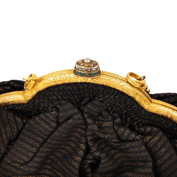 Borsa da sera in oro giallo e diamanti con stoffa nera