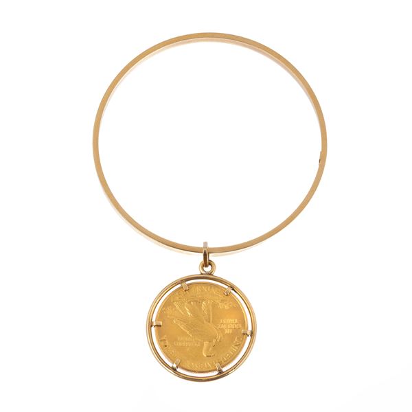 la moneta è in oro a 21 kt, il bracciale in oro 18 kt, gr 29.4