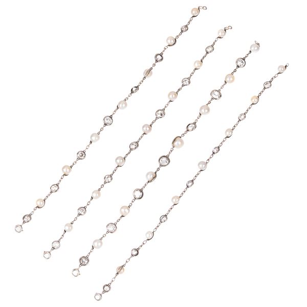 ventotto diamanti taglio vecchio per ct 10.50 circa, colore J-K, VS-SI-P1, perle da mm 5.5 a 7.5, collana trasformabile in quattro bracciali, gr 27.1