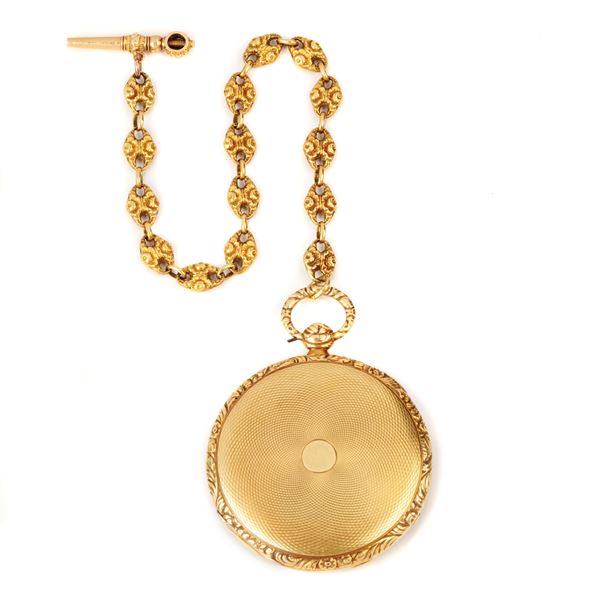 Orologio da tasca con catena e chiavetta in oro giallo 18 kt