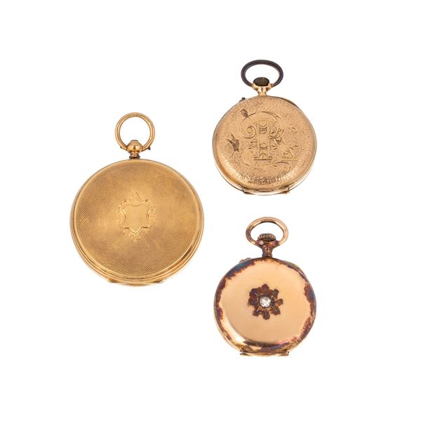 Orologio da tasca in oro 18 kt e altri due più piccoli in oro giallo 18 kt e diamanti