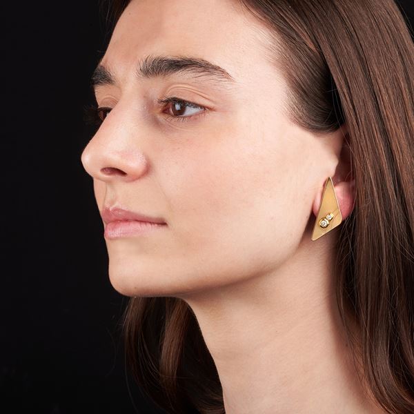Paio di orecchini a triangolo in oro giallo 18 kt e diamanti