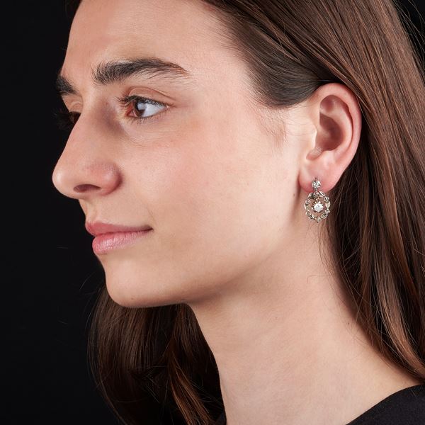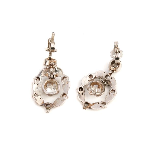 cm 1.4 x 2.2 horecchini con chiusura a vite, diamanti taglio vecchio per ct 1.0, colore J, SI, gr 4.7
