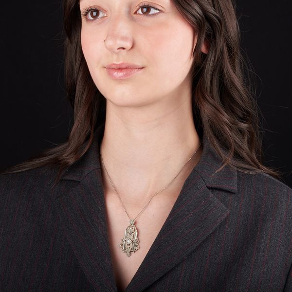 Pendente con catena in oro bianco e diamanti