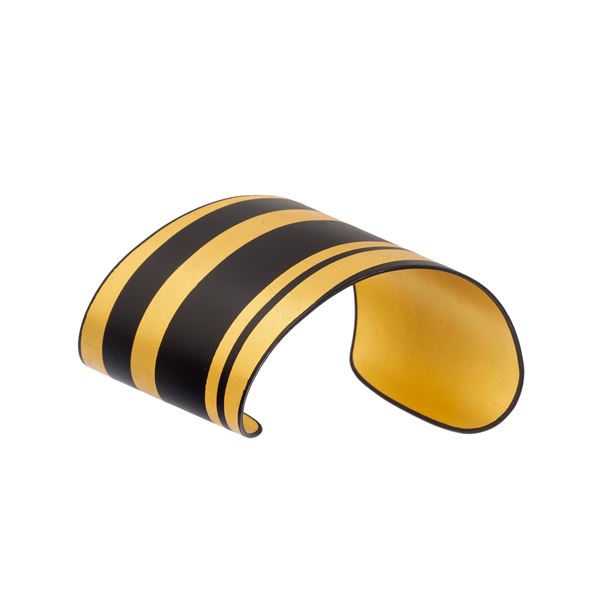 Angela Cummings Raro Bracciale Damascene in oro giallo, ferro e lacca nera
